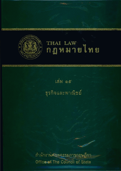 กฎหมายไทย เล่ม 15 : ธุรกิจและพาณิชย์ / สำนักงานคณะกรรมการกฤษฎีกา ; บรรณาธิการ ธนาวัฒน์ สังข์ทอง.