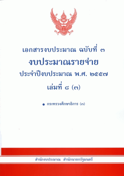 เอกสารงบประมาณ ฉบับที่ 3 งบประมาณรายจ่าย ประจำปีงบประมาณ พ.ศ. 2557 เล่มที่ 8 (3) กระทรวงศึกษาธิการ (3) / สำนักงบประมาณ.