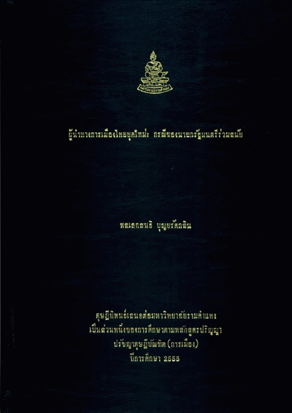 ผู้นำทางการเมืองไทยยุคใหม่ : กรณีของนายกรัฐมนตรีร่วมสมัย / สนธิ บุญยรัตกลิน .