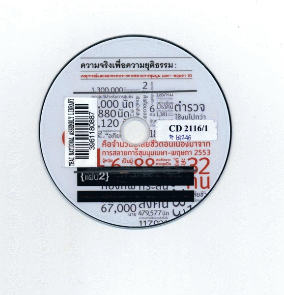 National Assembly Library of Thailand | Audio-Visual Materials collection | CD 2116/1, CD2116/2 (เรียกดูชั้นหนังสือ(เปิดด้านล่าง)) | ฉ. 1 | พร้อมให้บริการ | 3961180887 |