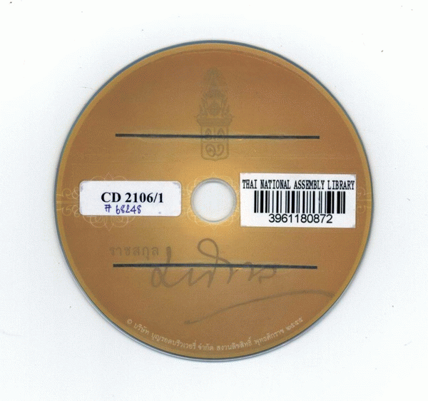 National Assembly Library of Thailand | Audio-Visual Materials collection | CD 2106/1, CD2106/2 (เรียกดูชั้นหนังสือ(เปิดด้านล่าง)) | ฉ. 1 | พร้อมให้บริการ | 3961180872 |