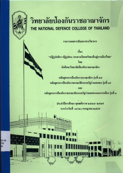 TextPublisher: กรุงเทพฯ : วิทยาลัยป้องกันราชอาณาจักร, 2549.Description: 57 หน้า : ตาราง ; 30 ซมSubject(s): LOC classification: - JQ 1745.A6 น379ร 2549
