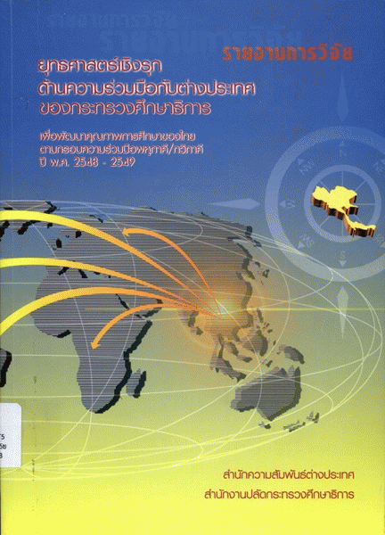 ยุทธศาสตร์เชิงรุกด้านความร่วมมือกับต่างประเทศของกระทรวงศึกษาธิการเพื่อพัฒนาคุณภาพการศึกษาของไทยตามกรอบความร่วมมือพหุภาคี/ทวิภาคี ปีพ.ศ. 2548-2549 / สำนักงานปลัดกระทรวงศึกษาธิการ กระทรวงศึกษาธิการ.