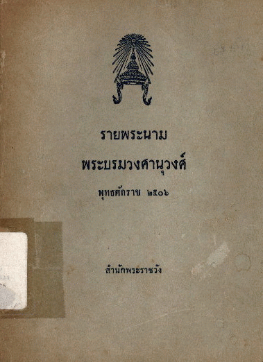 รายพระนามพระบรมวงศานุวงศ์ พุทธศักราช 2506 / สำนักพระราชวัง.