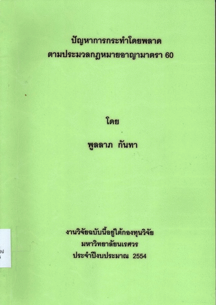 ปัญหาการกระทำโดยพลาดตามประมวลกฎหมายอาญามาตรา 60 / พูลลาภ กันทา.