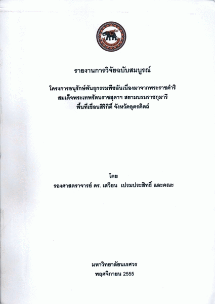 โครงการอนุรักษ์พันธุกรรมพืชอันเนื่องมาจากพระราชดำริสมเด็จพระเทพรัตนราชสุดาฯ สยามบรมราชกุมารี พื้นที่เขื่อนสิริกิติ์ จังหวัดอุตรดิตถ์ / เสวียน เปรมประสิทธิ์ และคณะ.