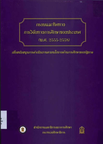 กรอบและทิศทางการวิจัยทางการศึกษาของประเทศ (พ.ศ. 2555-2558) เพื่อสนับสนุนการดำเนินงานตามนโยบายด้านการศึกษาของรัฐบาล / สำนักงานเลขาธิการสภาการศึกษา กระทรวงศึกษาธิการ.