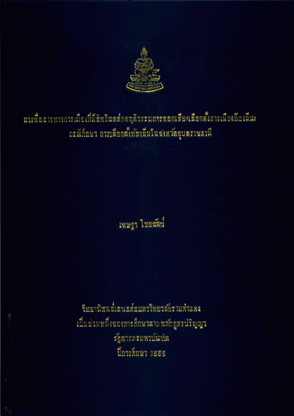 การสื่อสารทางการเมืองที่มีอิทธิพลต่อพฤติกรรมการออกเสียงเลือกตั้งการเมืองท้องถิ่น : กรณีศึกษา การเลือกตั้งท้องถิ่นในจังหวัดอุบลราชธานี / เชษฐา ไชยสัตย์.