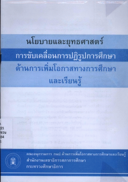 นโยบายและยุทธศาสตร์การขับเคลื่อนการปฏิรูปการศึกษาด้านการเพิ่มโอกาสทางการศึกษาและเรียนรู้ / สำนักงานเลขาธิการสภาการศึกษา.