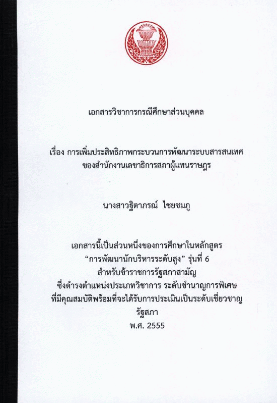 การเพิ่มประสิทธิภาพกระบวนการพัฒนาระบบสารสนเทศของสำนักงานเลขาธิการสภาผู้แทนราษฎร / ฐิตาภรณ์ ไชยชมภู.