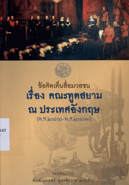 ข้อคิดเห็นสื่อมวลชน เรื่อง คณะทูตสยาม ณ ประเทศอังกฤษ(พ.ศ.2400 - พ.ศ.2401) / ผู้แปลและเรียบเรียง เสาวลักษณ์ กีชานนท์.
