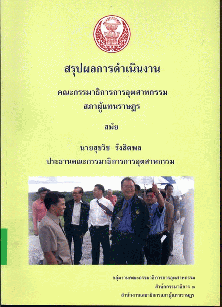 สรุปผลการดำเนินงานคณะกรรมาธิการการอุตสาหกรรม สภาผู้แทนราษฎร สมัยนายสุขวิช รังสิตพล ประธานคณะกรรมาธิการการอุตสาหกรรม / สำนักกรรมาธิการ 3 สำนักงานเลขาธิการสภาผู้แทนราษฎร.
