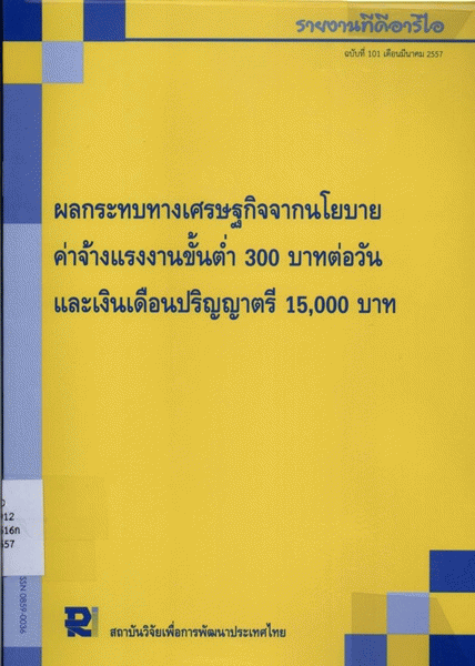 ผลกระทบทางเศรษฐกิจจากนโยบายค่าจ้างแรงงานขั้นต่ำ 300 บาทต่อวัน และเงินเดือนปริญญาตรี 15,000 บาท / สถาบันวิจัยเพื่อการพัฒนาประเทศไทย.