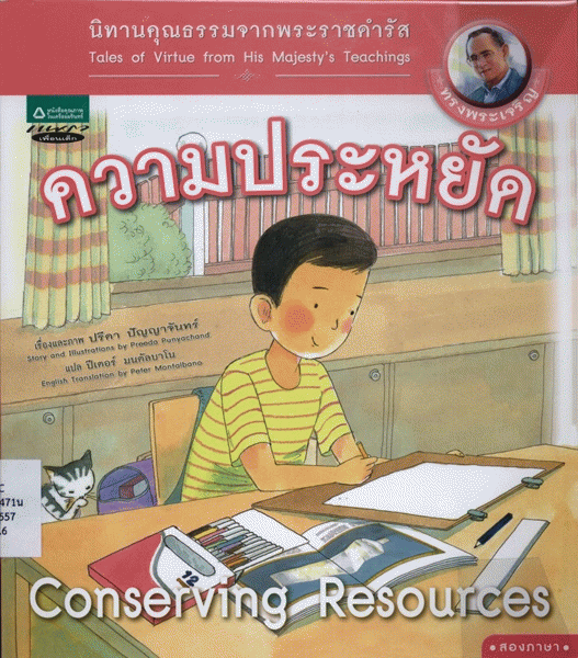 นิทานคุณธรรมจากพระราชดำรัส : ความประหยัด = Tales of virtue from His Majesty's teachings : conserving resources / เรื่องและภาพ ปรีดา ปัญญาจันทร์ ; แปล ปีเตอร์ มนตัลบาโน.