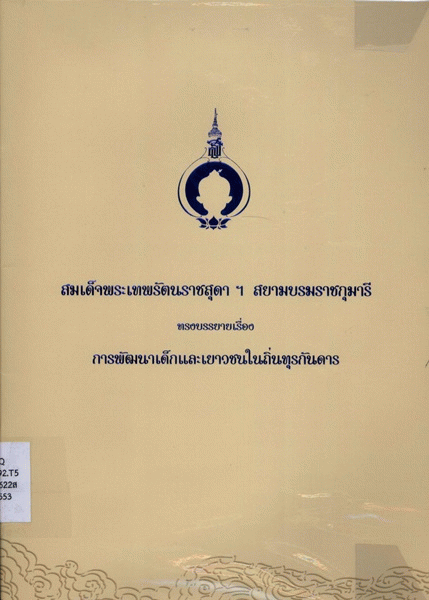สมเด็จพระเทพรัตนราชสุดา ฯ สยามบรมราชกุมารี ทรงบรรยายเรื่อง การพัฒนาเด็กและเยาวชนในถิ่นทุรกันดาร / สมเด็จพระเทพรัตนราชสุดา ฯ สยามบรมราชกุมารี.
