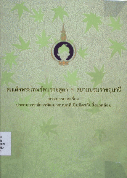 สมเด็จพระเทพรัตนราชสุดา ฯ สยามบรมราชกุมารี ทรงบรรยายเรื่อง ประสบการณ์การพัฒนาชนบทที่เป็นมิตรกับสิ่งแวดล้อม / สำนักงานโครงการสมเด็จพระเทพรัตนราชสุดา ฯ สยามบรมราชกุมารี.