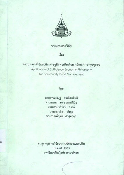 การประยุกต์ใช้แนวคิดเศรษฐกิจพอเพียงในการจัดการกองทุนชุมชน / ทยณฐ ชวนไชยสิทธิ์.