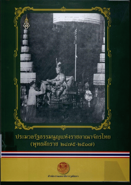 ประมวลรัฐธรรมนูญแห่งราชอาณาจักรไทย เล่ม 1 (รัฐธรรมนูญแห่งราชอาณาจักรไทย พุทธศักราช 2475-2517 และฉบับแก้ไขเพิ่มเติมทุกฉบับ) / สำนักกฎหมาย สำนักงานเลขาธิการวุฒิสภา.