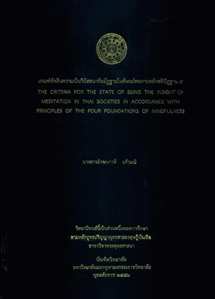 เกณฑ์ตัดสินความเป็นวิปัสสนากัมมัฏฐานในสังคมไทยตามหลักสติปัฏฐาน 4 / ลักษณาวดี แก้วมณี.