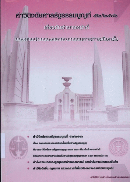 คำวินิจฉัยศาลรัฐธรรมนูญที่ 52/2546 เกี่ยวกับอำนาจหน้าที่ของศาลปกครองและคณะกรรมการการเลือกตั้ง / สำนักหอสมุดกฎหมายมหาชน สำนักงานศาลปกครอง.