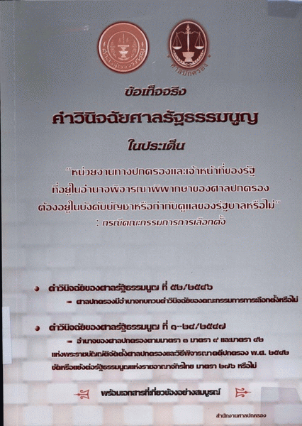 National Assembly Library of Thailand | Senate | Law Book shelves | KD 62 ศ365ข 2547 (เรียกดูชั้นหนังสือ(เปิดด้านล่าง)) | พร้อมให้บริการ | 0100006833001 | |