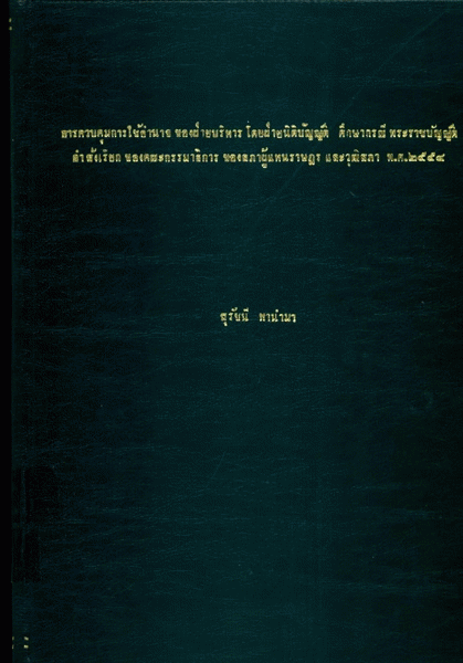 การควบคุมการใช้อำนาจของฝ่ายบริหารโดยฝ่ายนิติบัญญัติ ศึกษากรณีพระราชบัญญัติคำสั่งเรียกของคณะกรรมาธิการของสภาผู้แทนราษฎรและวุฒิสภา พ.ศ. 2554 / สุรัชนี พานำมา.