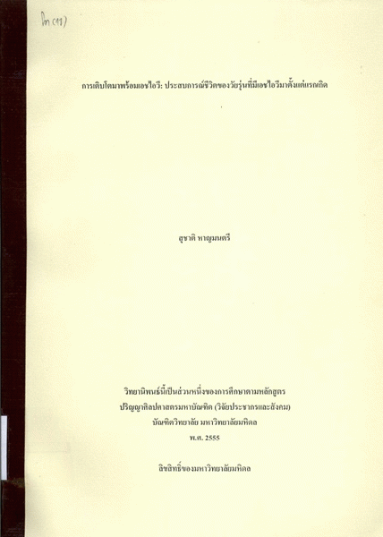 การเติบโตมาพร้อมเอชไอวี : ประสบการณ์ชีวิตของวัยรุ่นที่มีเอชไอวีมาตั้งแต่แรกเกิด / สุชาติ หาญมนตรี.