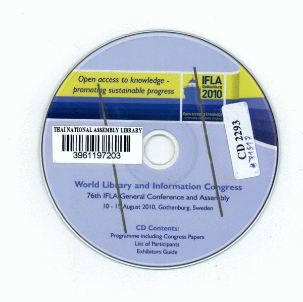 National Assembly Library of Thailand | Audio-Visual Materials collection | Audio-Visual zone | CD 2293 (เรียกดูชั้นหนังสือ(เปิดด้านล่าง)) | พร้อมให้บริการ | 3961197203 |