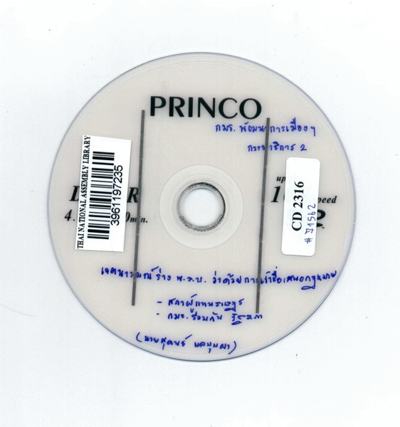 National Assembly Library of Thailand | Audio-Visual Materials collection | Audio-Visual zone | CD 2316 (เรียกดูชั้นหนังสือ(เปิดด้านล่าง)) | พร้อมให้บริการ | 3961197235 |