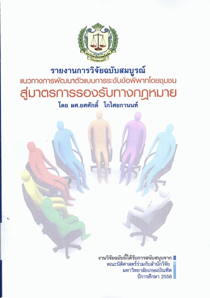 แนวทางการพัฒนาตัวแบบการระงับข้อพิพาทโดยชุมชนสู่มาตรการรองรับทางกฎหมาย / ยศศักดิ์ โกไศยกานนท์.
