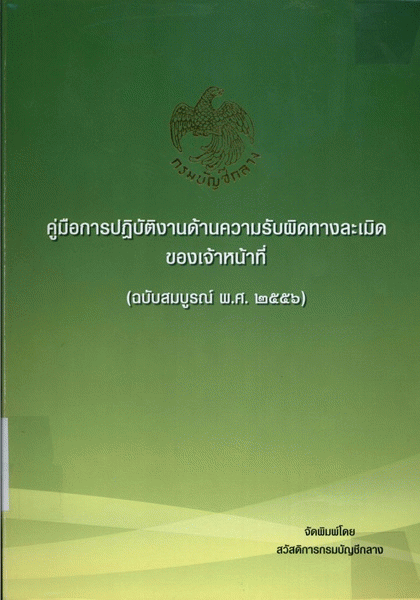 คู่มือการปฏิบัติงานด้านความรับผิดทางละเมิดของเจ้าหน้าที่ (ฉบับสมบูรณ์ พ.ศ. 2556) / สำนักความรับผิดทางแพ่ง กรมบัญชีกลาง.