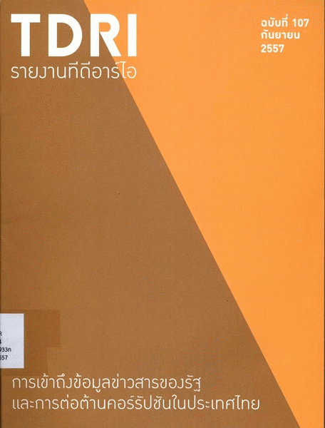 การเข้าถึงข้อมูลข่าวสารของรัฐและการต่อต้านคอร์รัปชันในประเทศไทย (รายงานทีดีอาร์ไอ ฉบับที่ 107 เดือนกันยายน 2557) / เดือนเด่น นิคมบริรักษ์, ธิปไตร แสละวงศ์.