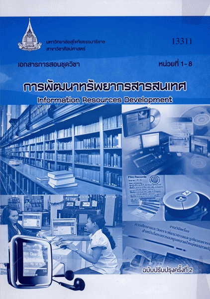 เอกสารการสอนชุดวิชา การพัฒนาทรัพยากรสารสนเทศ หน่วยที่ 1-8 / สาขาวิชาศิลปศาสตร์ มหาวิทยาลัยสุโขทัยธรรมาธิราช.