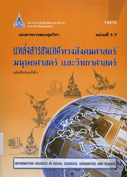 เอกสารการสอนชุดวิชา แหล่งสารสนเทศทางสังคมศาสตร์มนุษยศาสตร์ และวิทยาศาสตร์ หน่วยที่ 1-7 / สาขาวิชาศิลปศาสตร์ มหาวิทยาลัยสุโขทัยธรรมาธิราช.