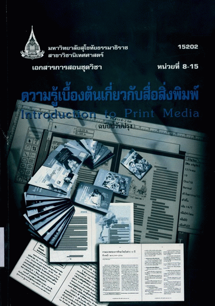 เอกสารการสอนชุดวิชา ความรู้เบื้องต้นเกี่ยวกับสื่อสิ่งพิมพ์ หน่วยที่ 8-15 / สาขาวิชานิเทศศาสตร์ มหาวิทยาลัยสุโขทัยธรรมาธิราช.