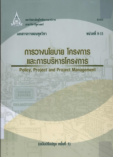 เอกสารการสอนชุดวิชา การวางนโยบาย โครงการ และการบริหารโครงการ หน่วยที่ 8-15 / สาขาวิชารัฐศาสตร์ มหาวิทยาลัยสุโขทัยธรรมาธิราช.