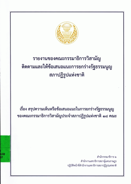National Assembly Library of Thailand | Parliamentary Publications Collection | Parliamentary Publications Shelves | สผ 18 7.3 342.02 2557 (เรียกดูชั้นหนังสือ(เปิดด้านล่าง)) | พร้อมให้บริการ | 3961200098 | |