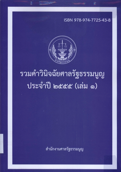 รวมคำวินิจฉัยศาลรัฐธรรมนูญ ประจำปี 2555 (เล่ม 1) / สำนักงานศาลรัฐธรรมนูญ.