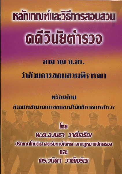 หลักเกณฑ์และวิธีการสอบสวนคดีวินัยตำรวจ ตามกฎ ก.ตร. ว่าด้วยการสอบสวนพิจารณา พร้อมด้วยตัวอย่างการสอบสวนวินัยข้าราชการตำรวจ / โดย พ.ต.อ.เมธา วาดีเจริญ และ วนิดา วาดีเจริญ.