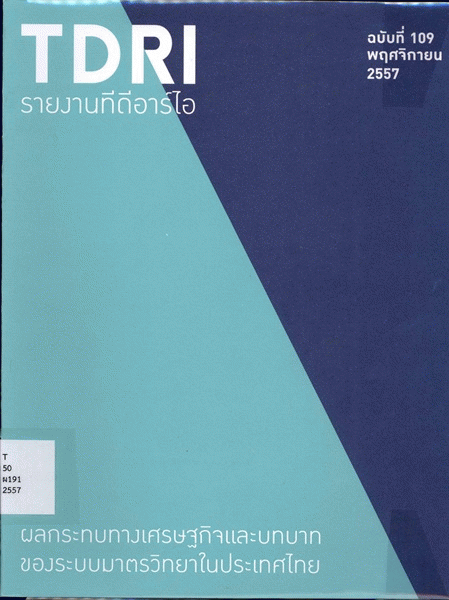 ผลกระทบทางเศรษฐกิจและบทบาทของระบบมาตรวิทยาในประเทศไทย (รายงานทีดีอาร์ไอ ฉบับที่ 109 พฤศจิกายน 2557) / กิตติพงศ์ สนธิสัมพันธ์, บรรณาธิการ.