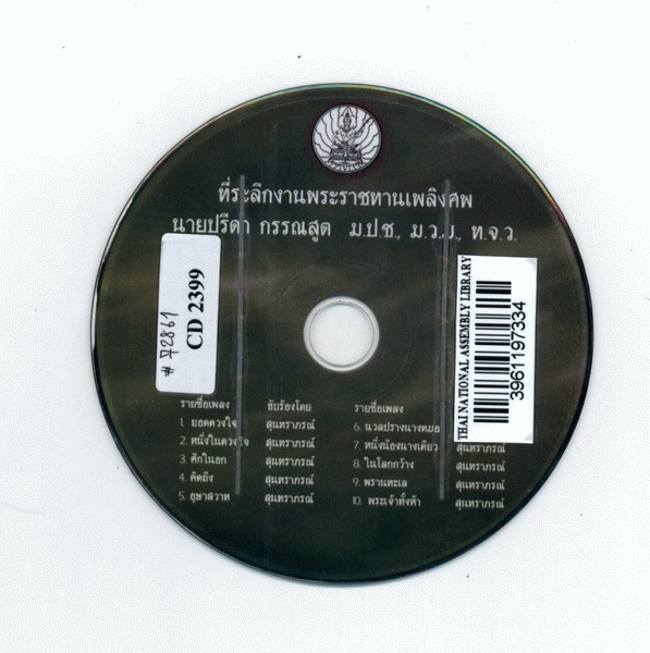 National Assembly Library of Thailand | Audio-Visual Materials collection | Audio-Visual zone | CD 2399 (เรียกดูชั้นหนังสือ(เปิดด้านล่าง)) | พร้อมให้บริการ | 3961197334 |