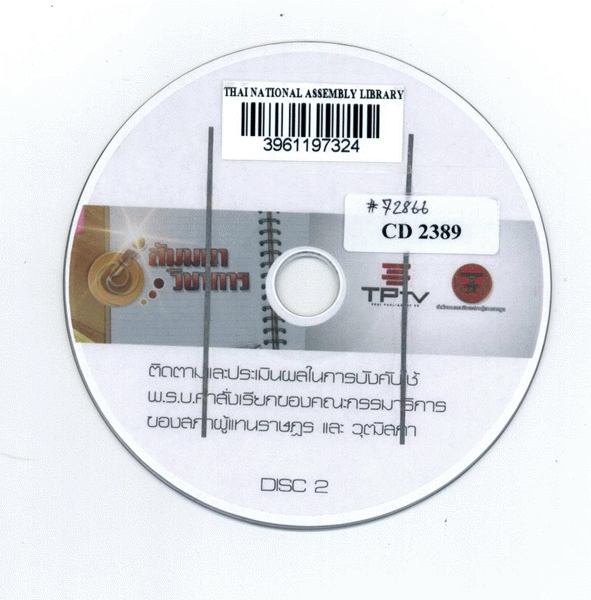 National Assembly Library of Thailand | Audio-Visual Materials collection | Audio-Visual zone | CD 2389 (เรียกดูชั้นหนังสือ(เปิดด้านล่าง)) | พร้อมให้บริการ | 3961197324 |