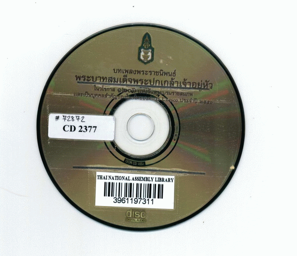 National Assembly Library of Thailand | Audio-Visual Materials collection | Audio-Visual zone | CD 2377 (เรียกดูชั้นหนังสือ(เปิดด้านล่าง)) | พร้อมให้บริการ | 3961197311 |