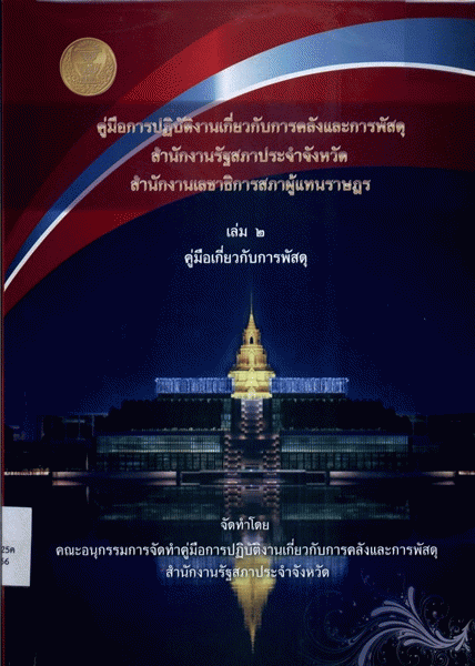 คู่มือการปฏิบัติงานเกี่ยวกับการคลังและการพัสดุ สำนักงานรัฐสภาประจำจังหวัด สำนักงานเลขาธิการสภาผู้แทนราษฎร เล่ม 2 คู่มือเกี่ยวกับการพัสดุ / คณะอนุกรรมการจัดทำคู่มือการปฏิบัติงานเกี่ยวกับการคลังและการพัสดุ สำนักงานรัฐสภาประจำจังหวัด.
