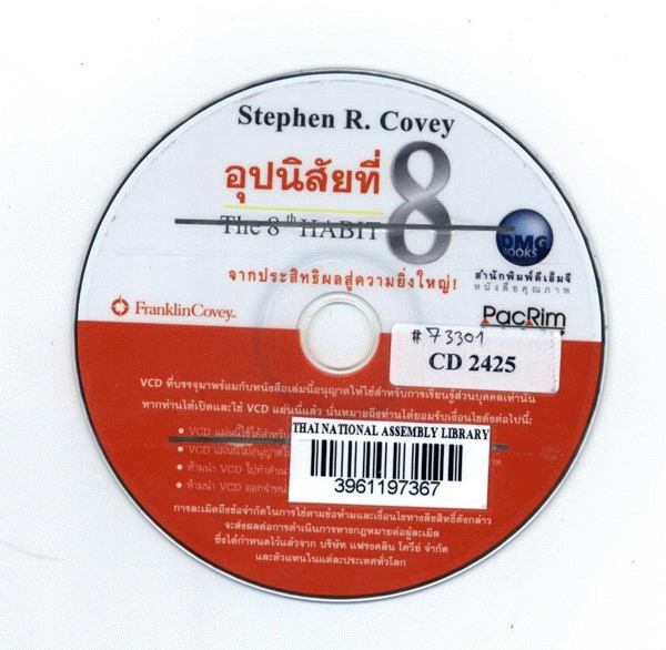 National Assembly Library of Thailand | Audio-Visual Materials collection | Audio-Visual zone | CD 2425 (เรียกดูชั้นหนังสือ(เปิดด้านล่าง)) | พร้อมให้บริการ | 3961197367 |
