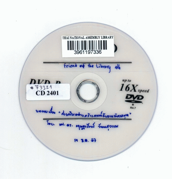 National Assembly Library of Thailand | Audio-Visual Materials collection | Audio-Visual zone | CD 2401 (เรียกดูชั้นหนังสือ(เปิดด้านล่าง)) | พร้อมให้บริการ | 3961197336 |