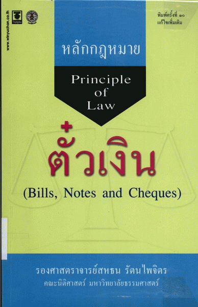หลักกฎหมายตั๋วเงิน = Principle of law : bills, notes and cheques / สหธน รัตนไพจิตร.