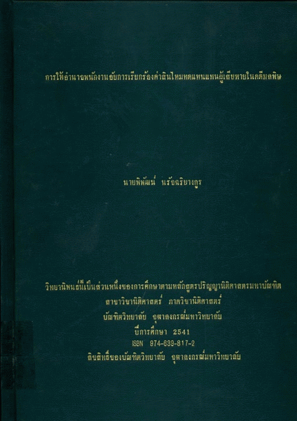 วิทยานิพนธ์ (นิติศาสตรมหาบัณฑิต)- -จุฬาลงกรณ์มหาวิทยาลัย, 2541.