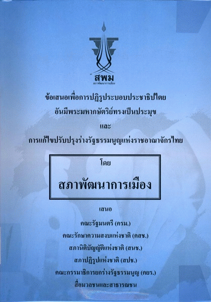 ข้อเสนอเพื่อการปฏิรูประบอบประชาธิปไตยอันมีพระมหากษัตริย์ทรงเป็นประมุข และการแก้ไขปรับปรุงร่างรัฐธรรมนูญแห่งราชอาณาจักรไทย / โดย สภาพัฒนาการเมือง.
