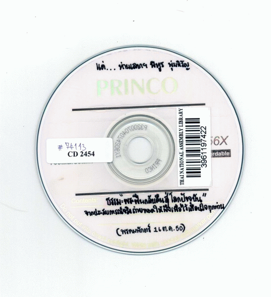 National Assembly Library of Thailand | Audio-Visual Materials collection | Audio-Visual zone | CD 2454 (เรียกดูชั้นหนังสือ(เปิดด้านล่าง)) | พร้อมให้บริการ | 3961197422 |